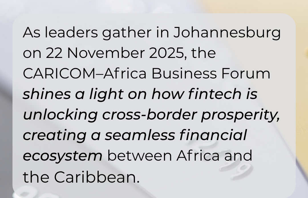 The inaugural CARICOM Africa Business Forum took place on 22 November 2025 in Johannesburg, South Africa, on the margins of the G20 Summit.